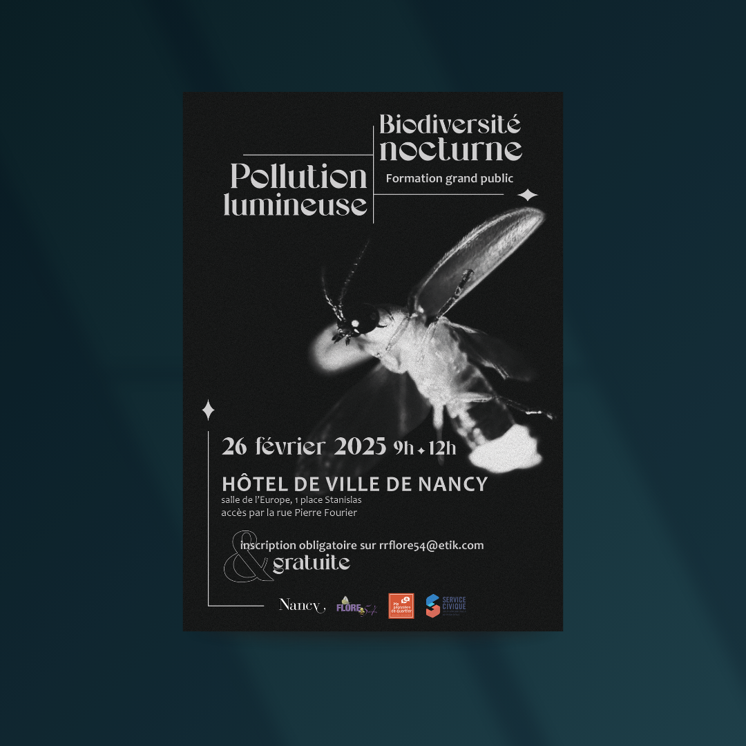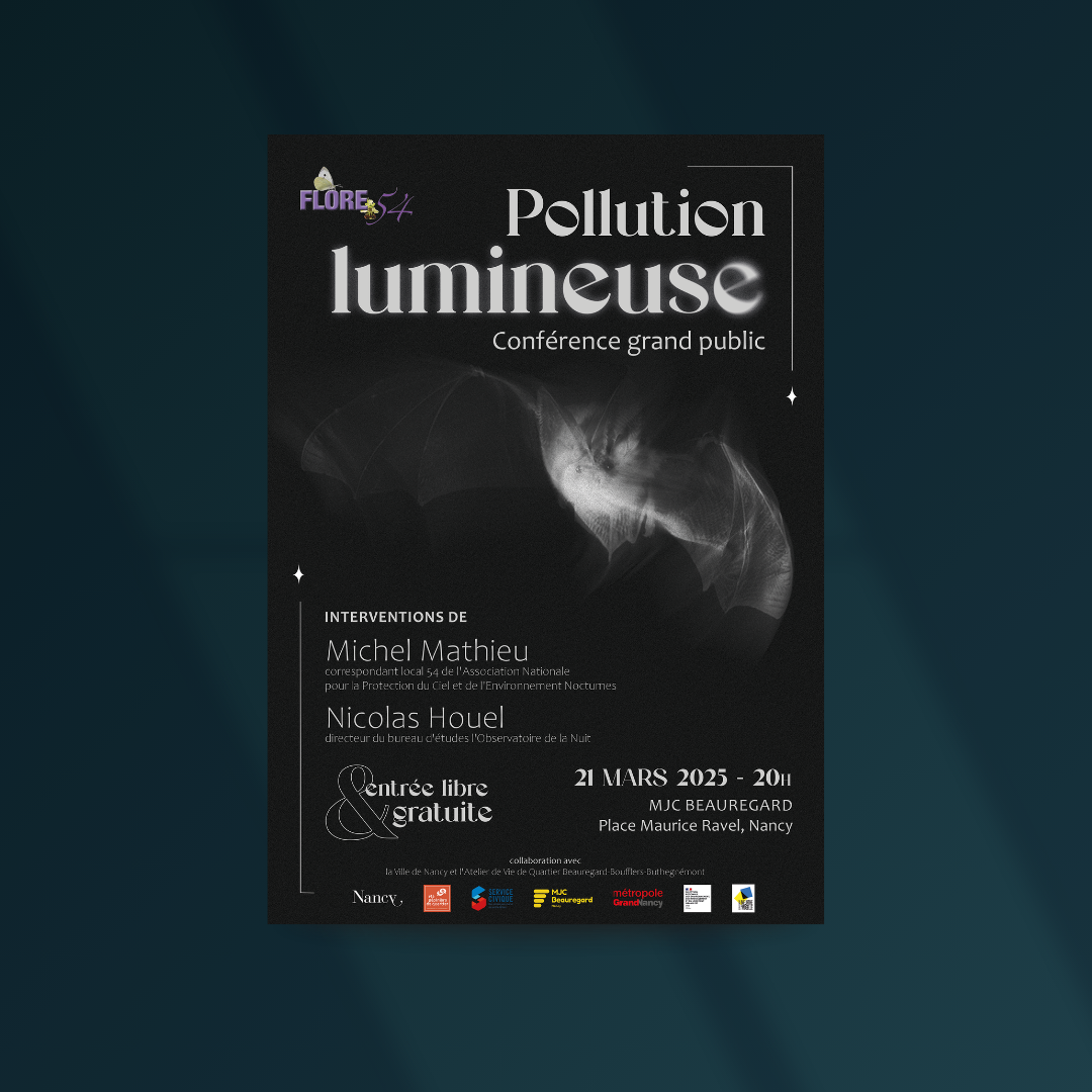 Un deuxième projet mené durant mon service civique chez FLORE 54 à Laxou concernait la Pollution Lumineuse. En collaboration avec un collègue, l’objectif était de sensibiliser aux effets négatifs de l’éclairage artificiel sur la faune et la flore nocturnes. Ce projet s’est inscrit dans le cadre d’une formation et d’une conférence organisées à Nancy et Laxou.